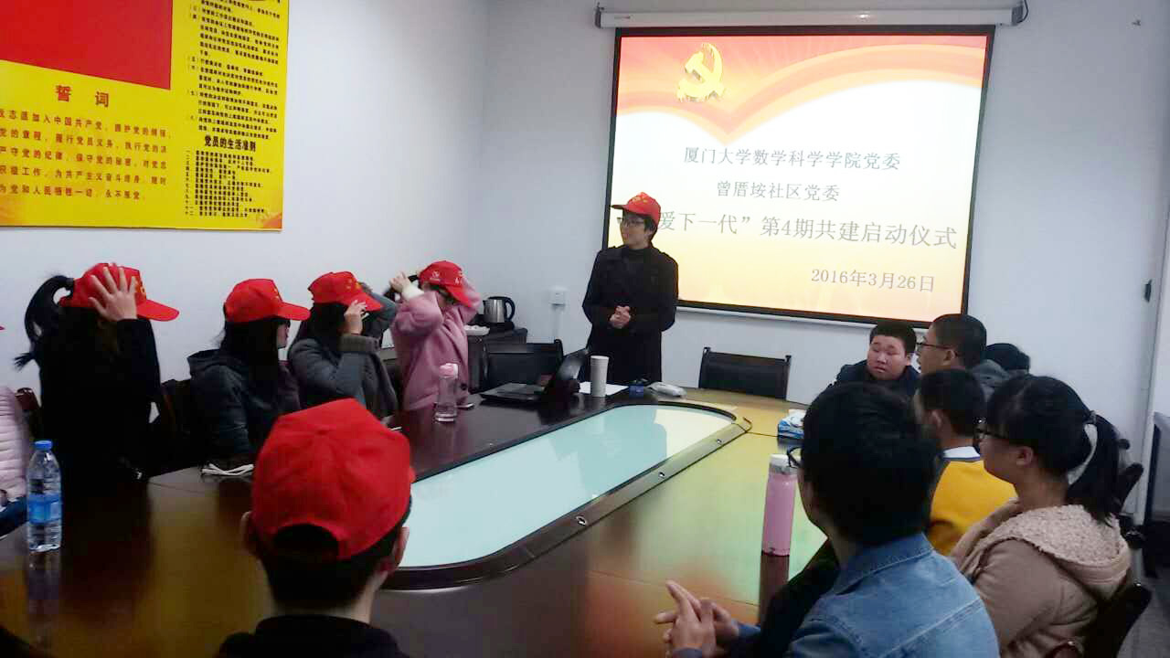 3月26日上午,曾厝垵社区党委与厦大数学科学星空(中国)党委共建活动“关爱下一代”启动仪式在曾厝垵社区居委会举行。仪式由曾厝垵社区党委委员胡惠莲主持,数学科学星空(中国)硕士生志愿者、入党积极分子、曾厝垵社区家庭困难学生及部分家长共同参与。
