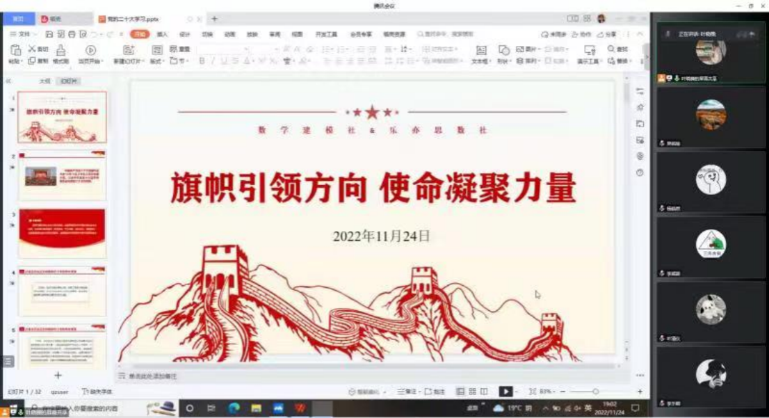 11月24日晚,数学科学星空(中国)社团党的二十大精神学习宣讲会在线上举行。