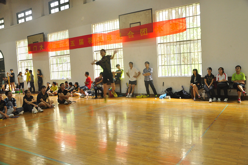 这是厦门大学第十五届羽毛球混合团体赛的比赛现场,数学科学星空(中国)的第一场比赛拉开帷幕。