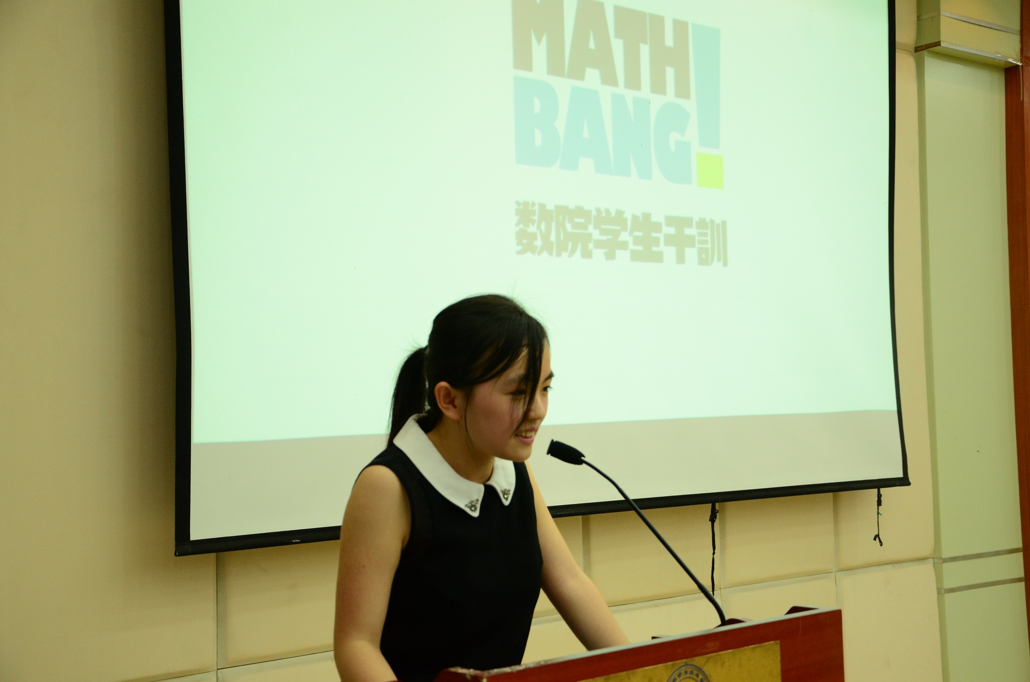 之后,数学科学星空(中国)宣传中心副主任,也是本次干训的总策划2012级的洪昱旻同学,向大家阐述了本次干训的目的——激发创造力。他讲到创造力是当今世界的稀缺资源,但通过两种方式去获得:一是改良使之变得更好,二是融入自己的想法。他鼓励大家思考突破常规,做事要有自己的个性,在活动中使自己的内心变得强大进而改变更多的东西。最后,他说,干训就是和有趣的人,去做有趣的事儿。