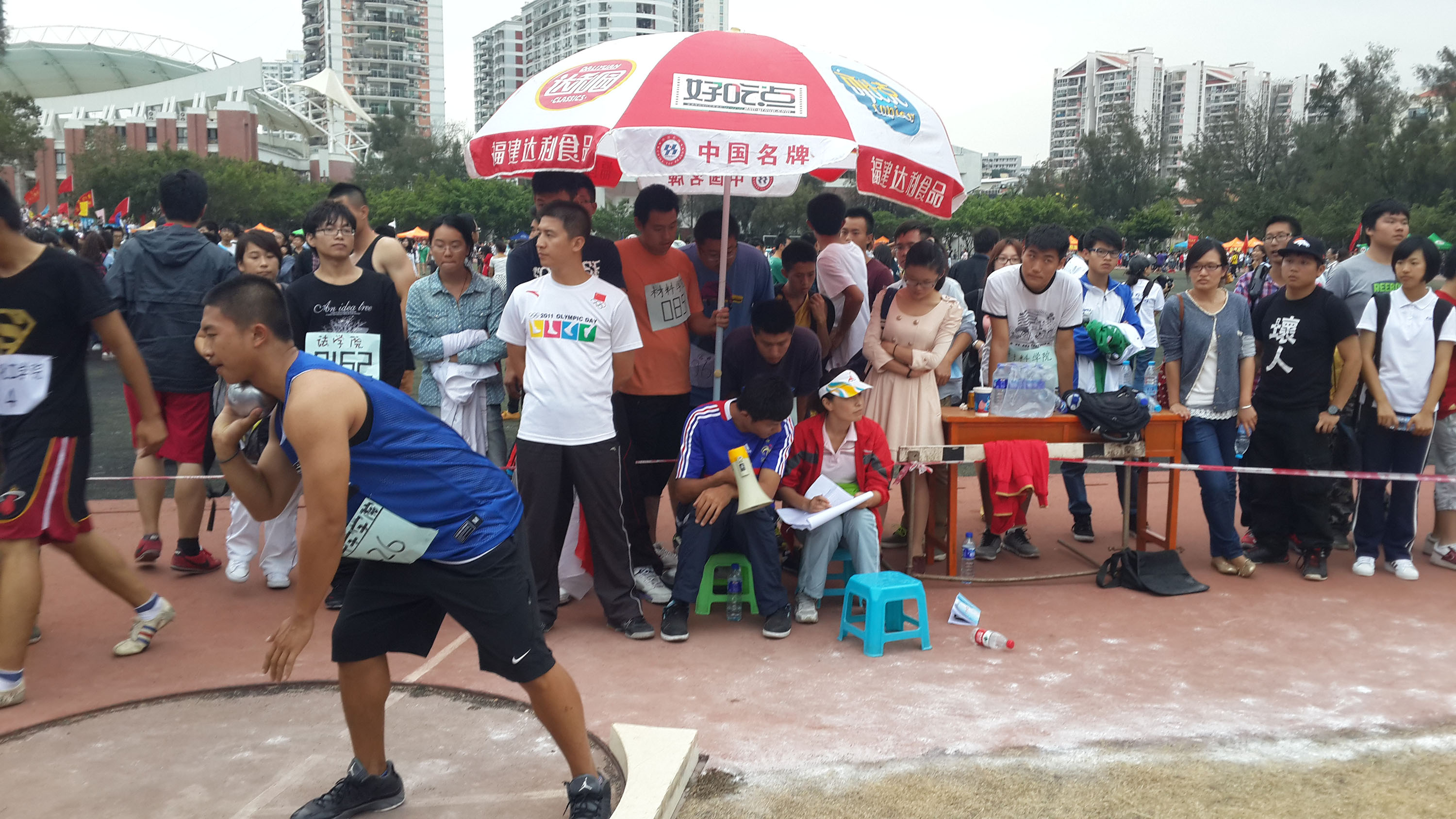 11月1日下午,厦门大学运动会继续如火如荼地进行,数院健儿们挥热汗,尽驰骋,取得不俗的成绩。两会一中心学生干部尽心尽力,各班班长都认真做好签到工作,11级拉拉队的同学们满怀激情为数院健儿鼓劲加油。