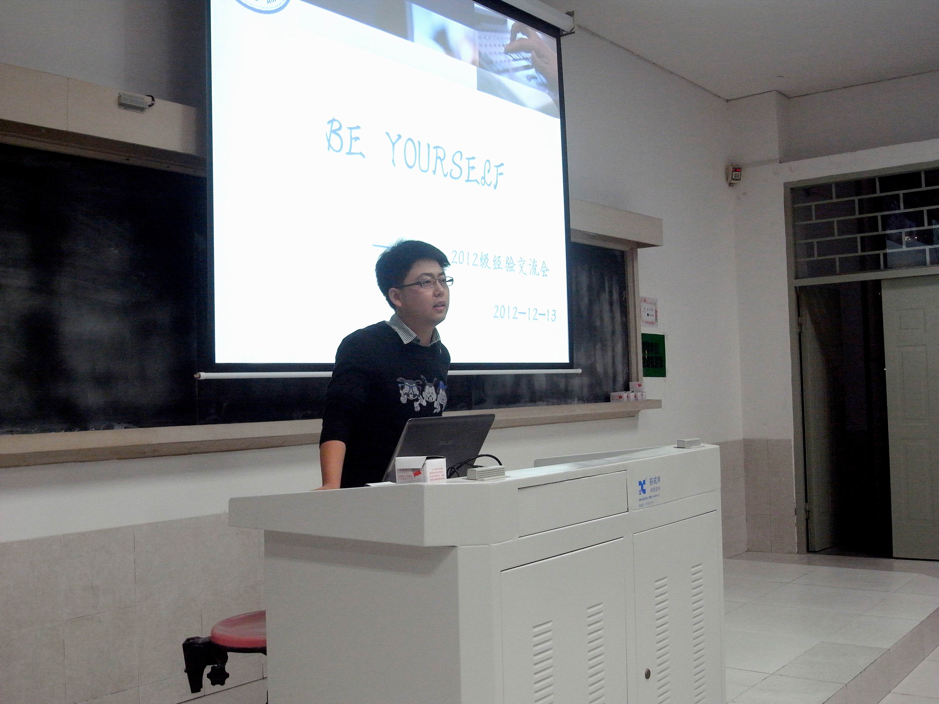首先是学习、生活、工作各方面都非常优秀的王旭学姐向大家介绍经验。王旭学姐以时间为轴,将三年里自己在不断努力中所得的收获娓娓道来,并讲述了大四以来重新审视内心,扩大见识,四处旅行,放松灵魂的心路历程,向大家展示了一种淡定从容的大学态度。