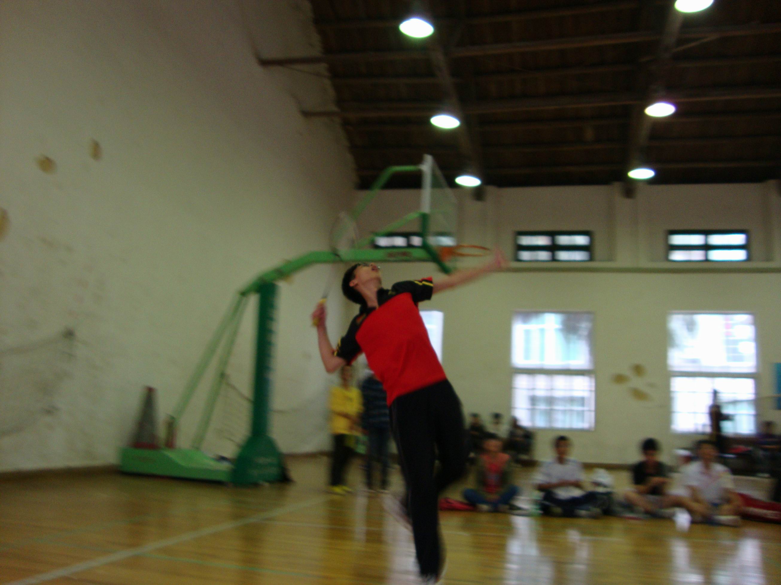 第一场男单,蔡旭辉同学迎战对手。比赛伊始对手便占据主动,通过凶狠的大力扣杀压制这我院队员发挥。但是蔡旭辉依然通过拉球调动对手,连得数分,可惜未能延续势头,以两个6:11不敌对手。