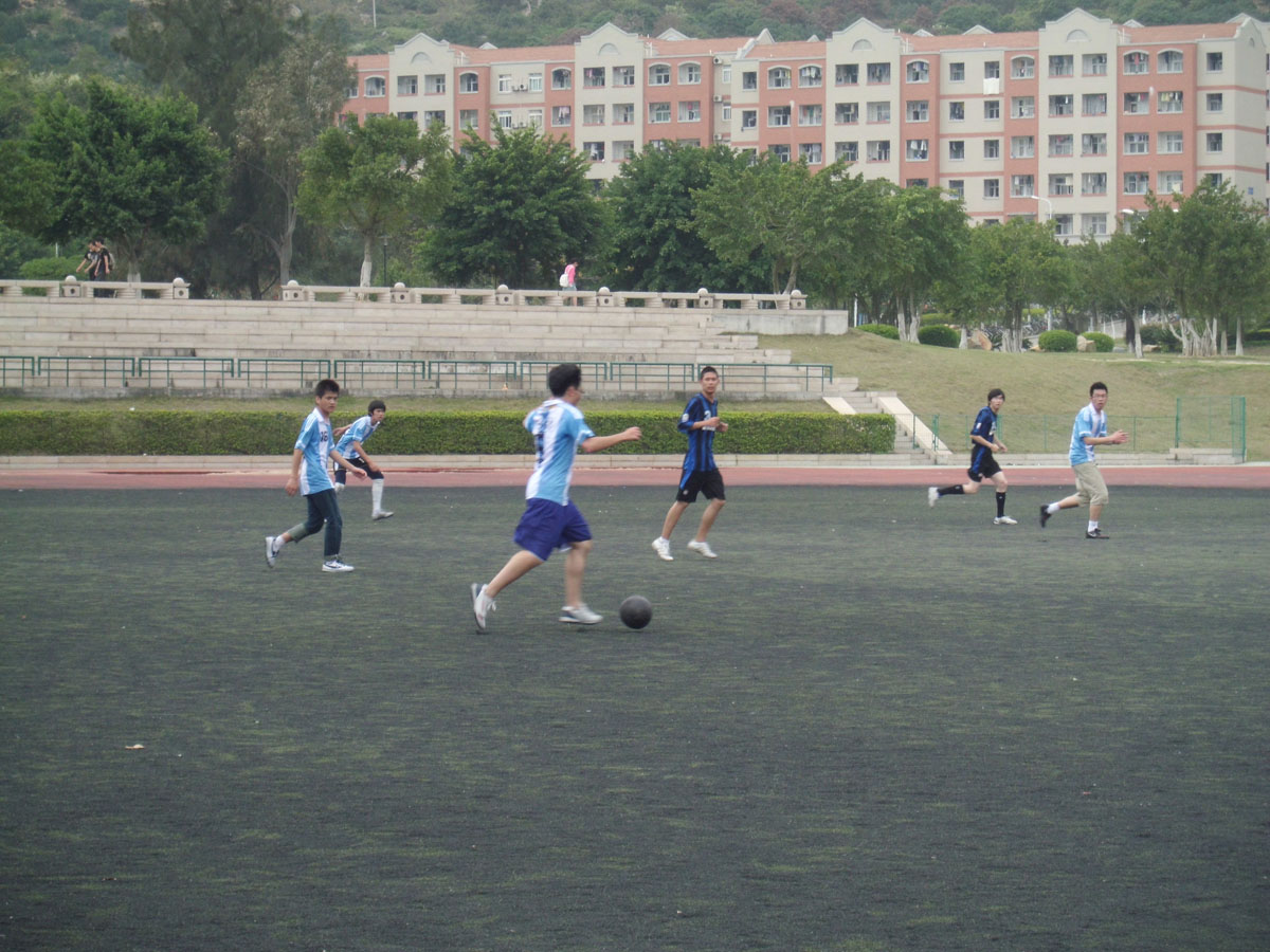 下半场开始约10分钟,我院李同翔带球组织进攻。他将球传给右路的陈恩,陈恩直接横传中路。在后点跟进的李匡正将球成功挡入对方球门,我院3:0领先。随后我方队员在禁区内手球,对方的点球被我院门将蔡斯昆神勇扑出底线。场边我院助阵的观众一片欢呼。
