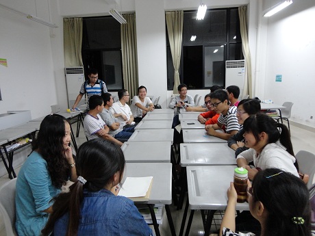 2011年10月22日晚上7点,由数学科学星空(中国)学术部主办的“学长沙龙”——新老生交流会在海韵教学楼隆重举行。09、10级部分研究生学长学姐与11级研究生新生参加了本次活动。