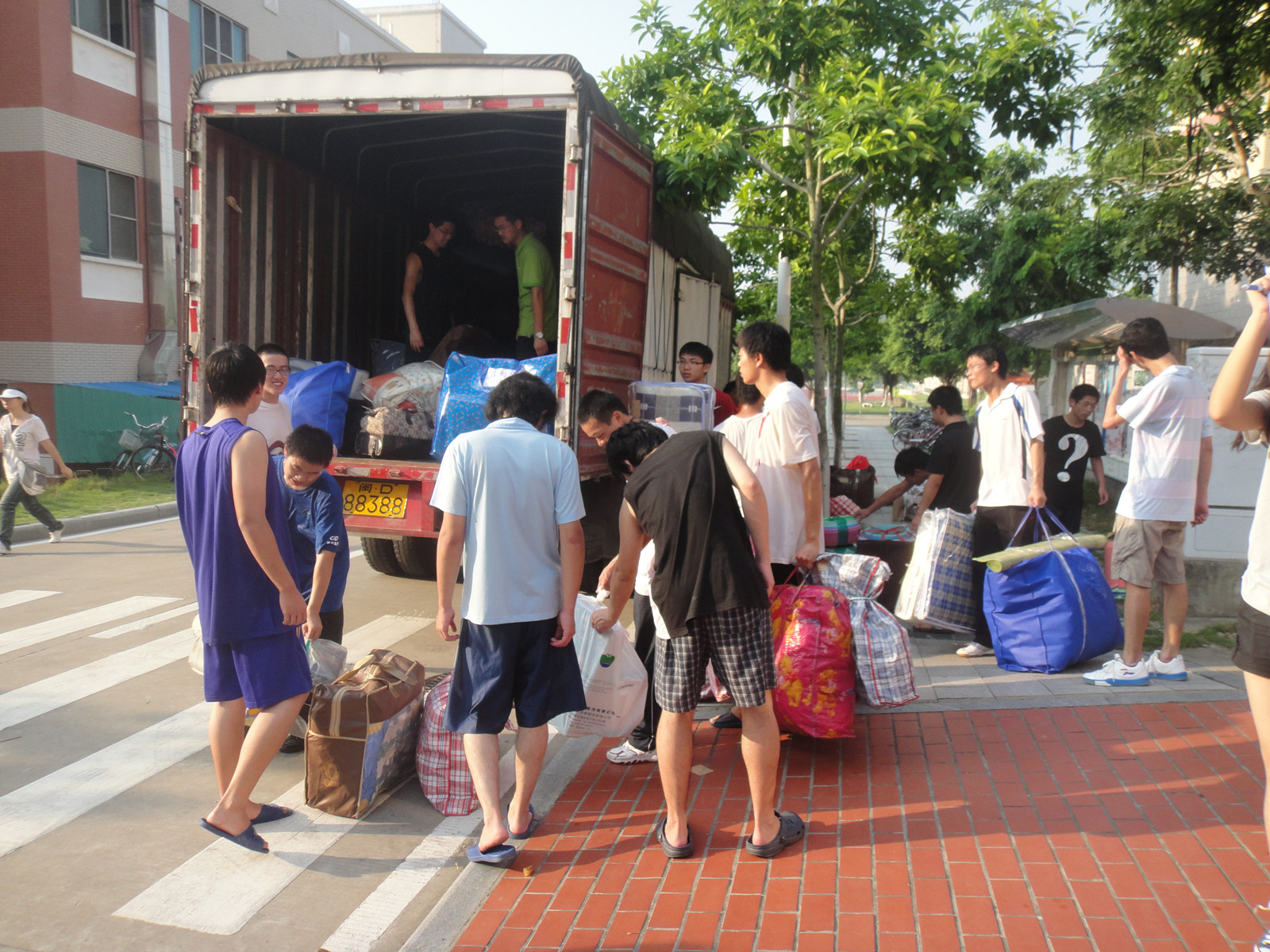 截至上午7:30,芙蓉与博学两园区的装车工作全部结束。随后,09级同学们跟随学校专门的车船来到海韵校区,并在08级学长学姐的帮助下将行李全部搬到了新的宿舍。接近中午时,入住工作也全部结束。
