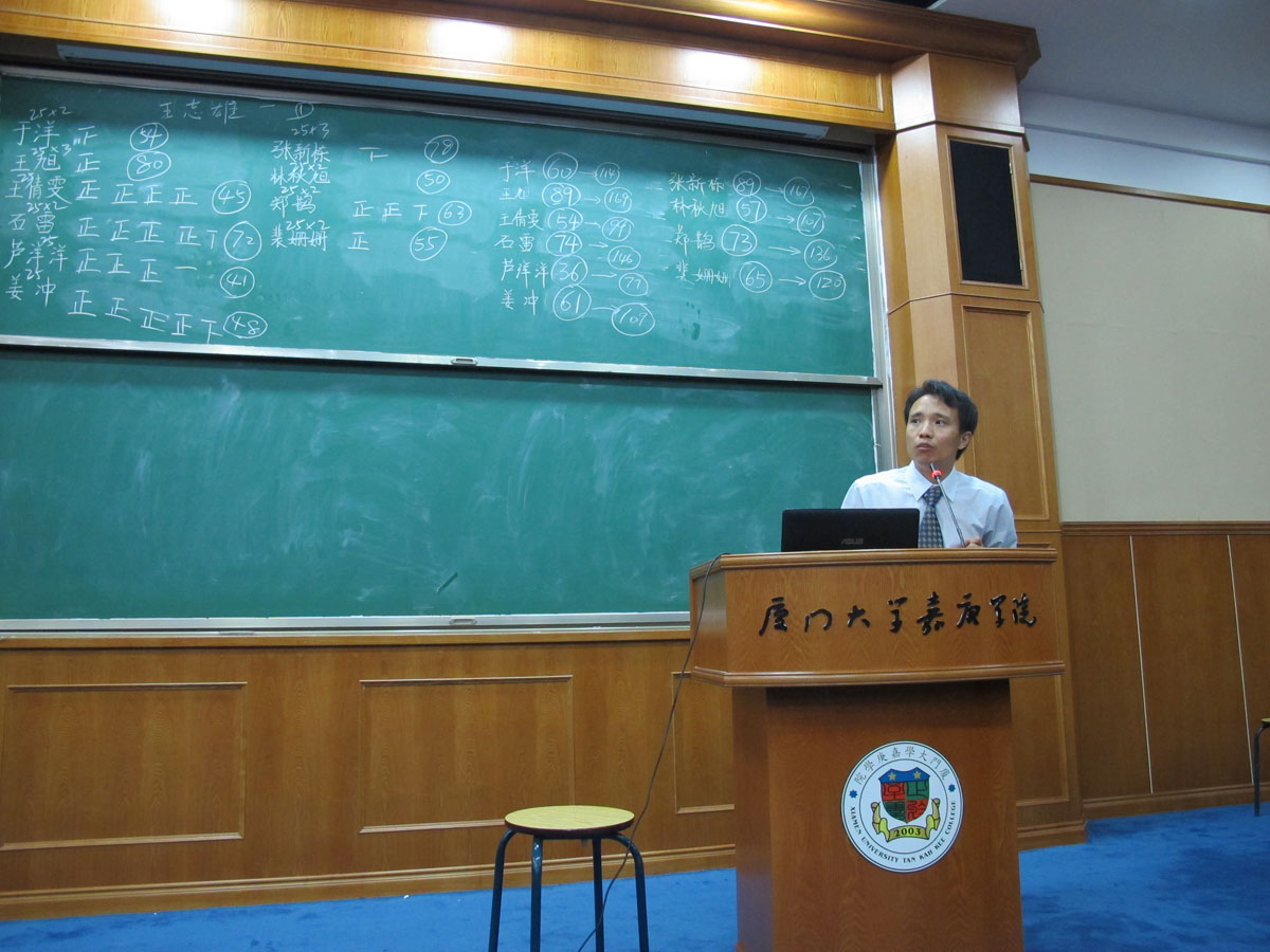 10位参加竞选的学生会干部中09级王倩雯与芦洋洋同学因为在外地交流学习而未能来到现场,但是她们通过精心准备的PPT由杨老师向现场老师与同学们代为转达了自己的竞选内容。现场的8位竞选者09级于洋、王旭、石雷、姜冲,10级郑鹊、张新栋、林秋旭、裴姗姗则按会前抽签顺序依次向大家进行了十分精彩的竞选演说。他们来自不同的部门,不同的班级,有着不同的经历,但是在过去的一年中他们都共同为数学科学星空(中国)的各项活动与工作付出了很多的汗水与努力,他们都有一个共同的目标,那就是让每一位数学学子在数学科学星空(中国)这个大家庭中能够真切感受到家的温暖,从而更好的发挥出自己的潜力,无论生活还是学习,希望每位同学的大学四年都是自己一生中最宝贵最美好的回忆。他们用一个个真实的故事感动了在场的老师与同学,用自己对学生工作的热情与付出不求回报的精神鼓舞着在场的每一个人。