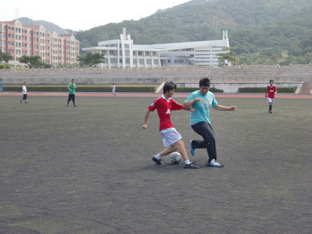 下午三点首先开始的是0910级足球友谊赛暨09级和外转专业同学的告别赛。双方队员本着“友谊第一,娱乐为主”的原则和心态,在绿茵场上恣意驰骋拼搏,挥洒汗水,场面激烈而不失和谐。整场比赛中陈恩的唯一进球打破僵局,以10的比分告终。