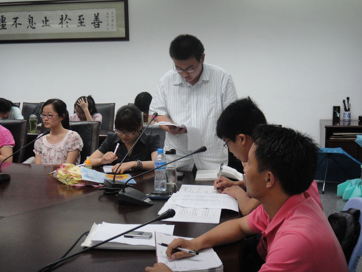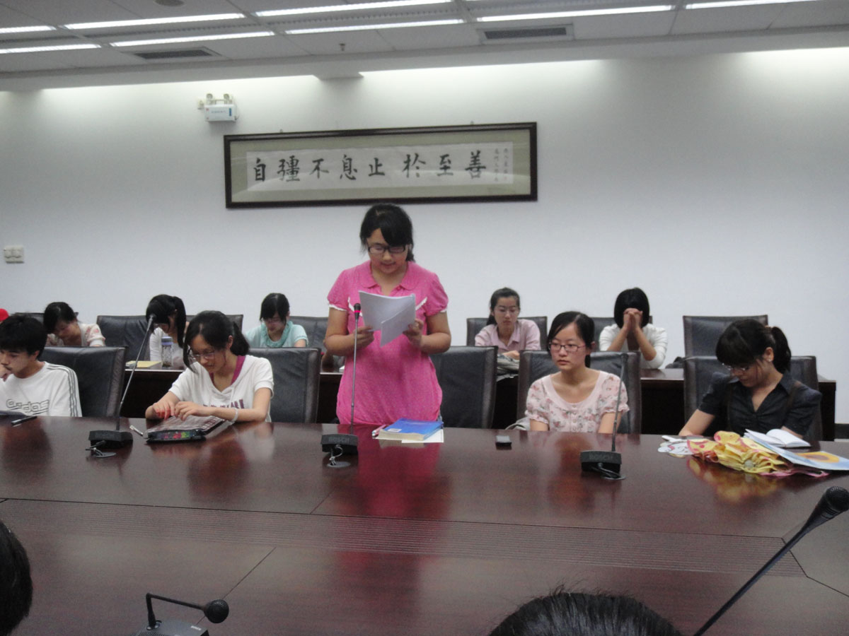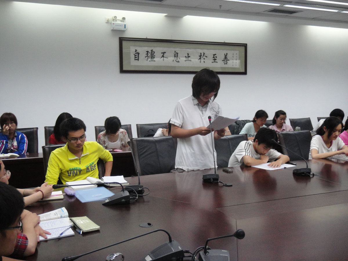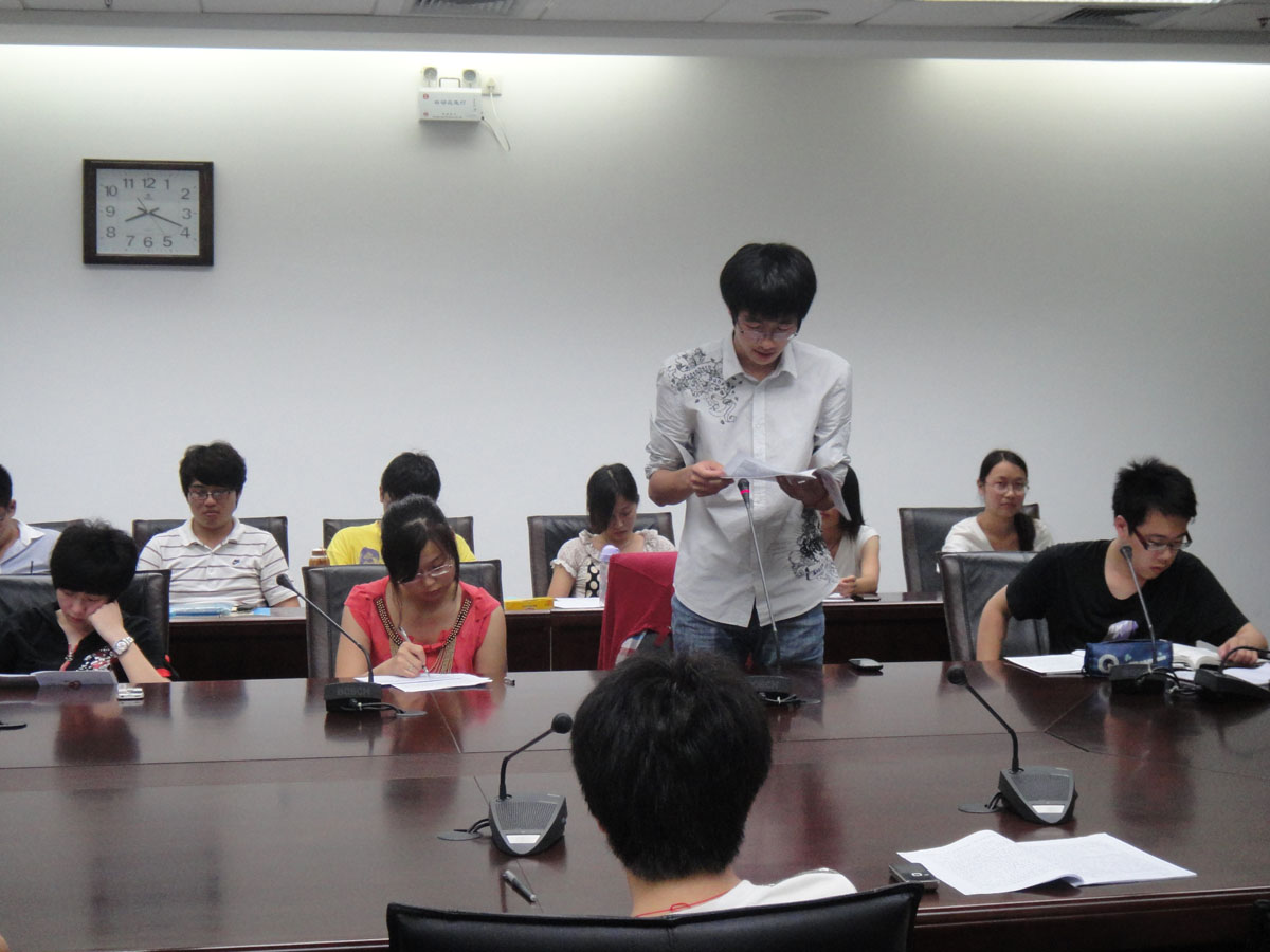 最后,会上还就是否同意3名预备党员转正申请进行了讨论。09级赵宇寰,10级李宏生和10级马婷依次宣读了自己的转正申请书,并对过去一年自身对党的认识及个人发展进行了总结。杨老师对此三位同学进行了简单的介绍。紧接着,会上的全体党员对他们依次进行了讨论,均表示同意接受3位同志的转正申请。