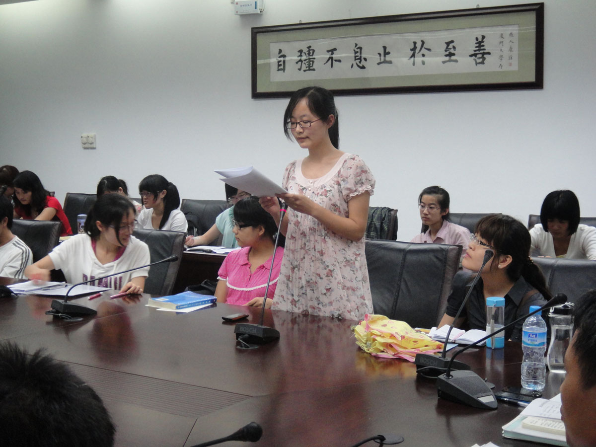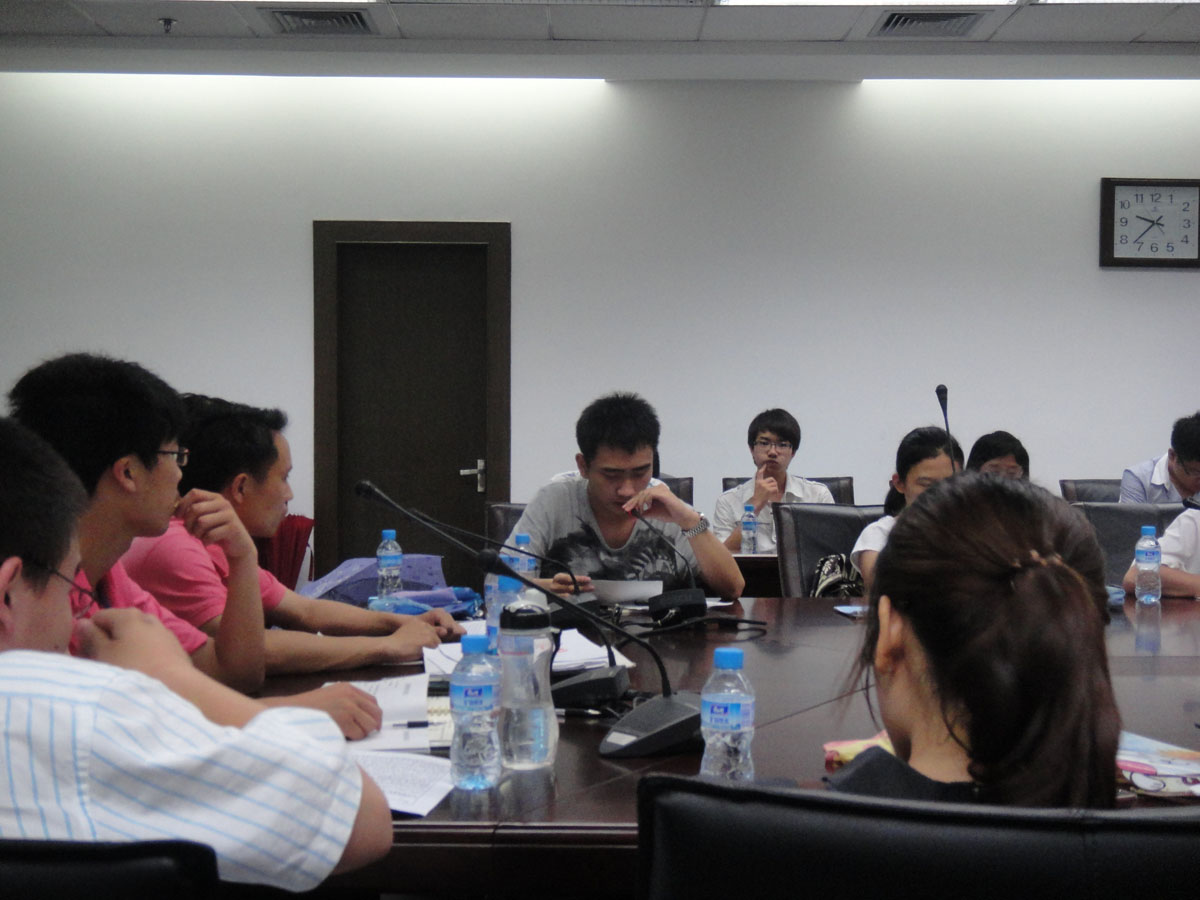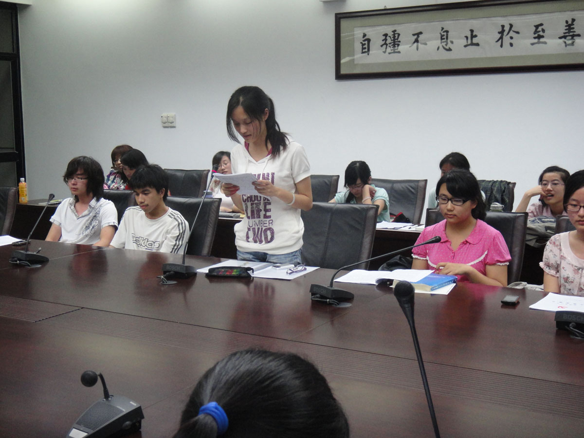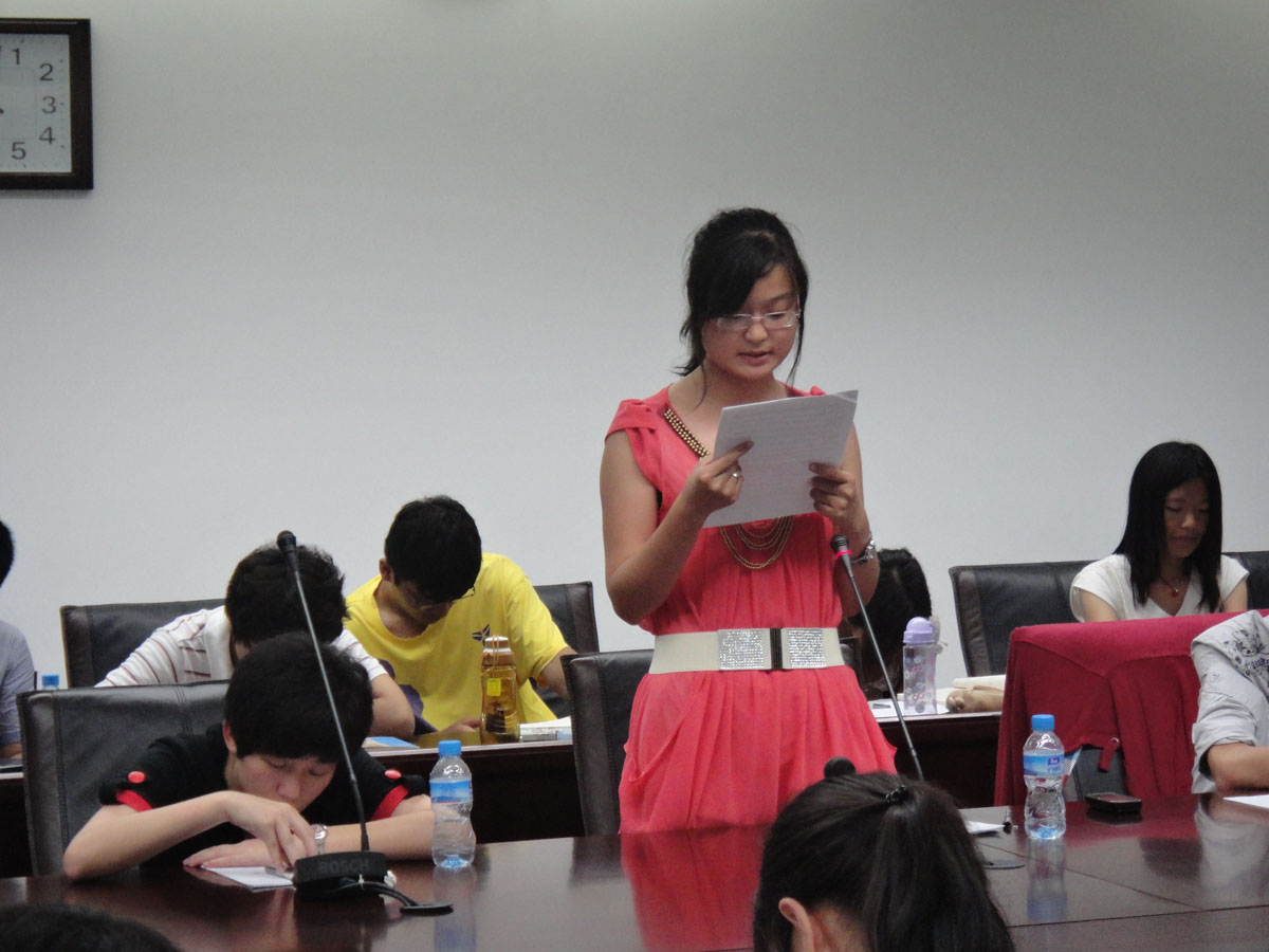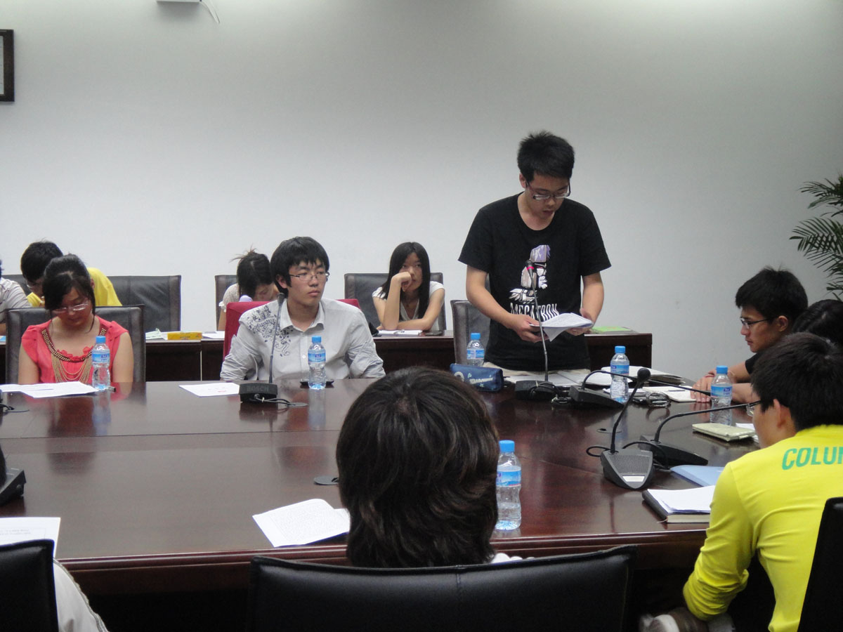 最后,会上还就是否同意3名预备党员转正申请进行了讨论。09级赵宇寰,10级李宏生和10级马婷依次宣读了自己的转正申请书,并对过去一年自身对党的认识及个人发展进行了总结。杨老师对此三位同学进行了简单的介绍。紧接着,会上的全体党员对他们依次进行了讨论,均表示同意接受3位同志的转正申请。