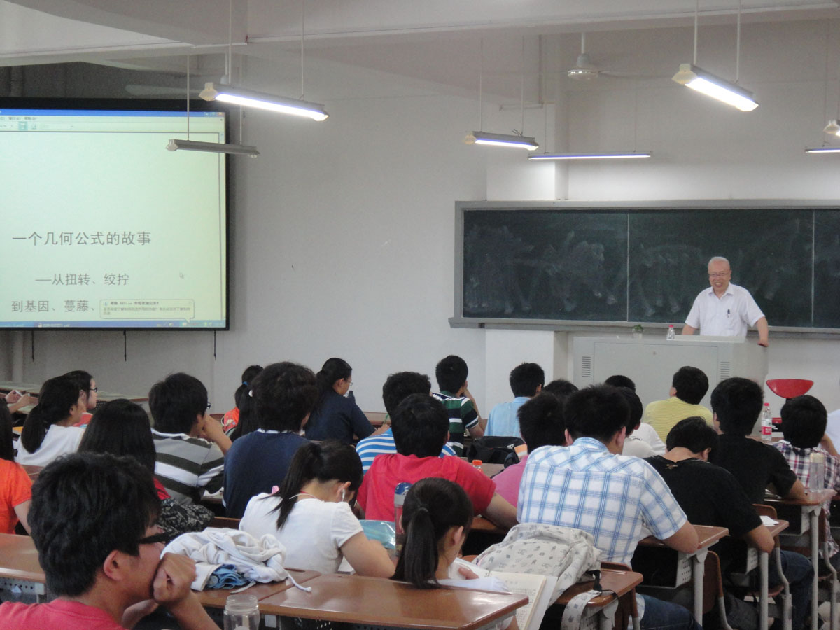 520下午2:30,应数学科学星空(中国)邀请,中国科星空(中国)院士、北京大学教授姜伯驹教授莅临漳州校区做题为《一个几何公式的故事——从扭转、绞拧到基因、蔓藤、太阳喷发》的精彩学术讲座。讲座由我院党委书记张明智主持,并吸引了我院0910级众多学生及许多外院同学前来聆听。
