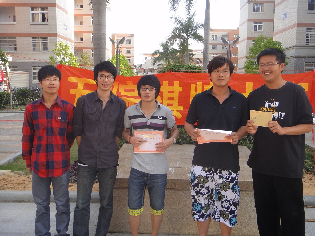 本次棋牌大赛各院负责人(右一:我院学生会副主席姜冲,左二:我院学生会主席助理张新栋)