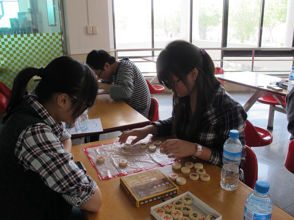 下午的比赛更加激烈紧张。首先进行的两个项目的半决赛中,吴璇杀入象棋决赛。数院的两队选手在八十分的半决赛场上狭路相逢,最终10级陈汉/黄步跃挺进决赛。