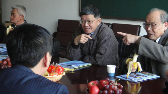 邱春晖副院长对目前我校数学系的现状做了介绍,我院现今增高了本科生的录取门槛,基地班的建设也着实在提高着本科生的教育水平。林亚南院长也抽空参加了座谈会,陈述了我院在未来几年的发展目标和努力方向。席间,大家还探讨了我国近几年在数学学科上的成就、我院学科的设置和建设问题、本科生研究生教育难题的解决方法以及学校教师队伍的福利问题等。校友们对现今数院的建设和未来的发展提出了宝贵的意见和建议,同时也表达了在新的一年对母校的和数院的殷切期望。