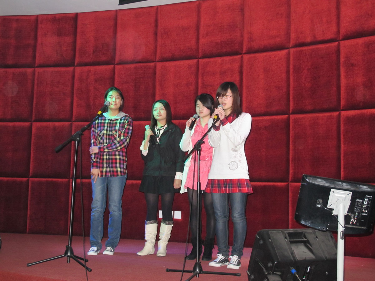 唯美的灯光下,怀揣着激情与梦想的选手们一上台就让在场所有人感受到了他们展现才华的渴望和洋溢青春的热情。他们在舞台上不仅尽情地展示了自己的才艺,打造出一幅幅声色兼美的亮丽风景,而且还用自己动听的歌声和不俗的舞台表现,诠释着青春飞扬的主题。整个比赛过程中现场气氛十分活跃,选手们激情挥洒,掌声和喝彩声更是经久不息。其中09级514组合以一首SHE的《爱呢》赢得了全场最高分。10级江艾婧获得了当晚的人气之星称号。