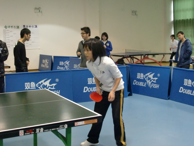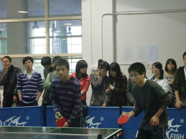 接下来的男双比赛由在八强赛和四强赛中决胜对手的10级陈汉和江全荣上场。一向以沉着冷静著称的组合顶住大比分落后的巨大压力,为我院扳回1分。随后出场的10级张新栋,面对强大的对手镇定自若,气势和风度具备,又为数院夺回一分的同时,将精彩奉献给观众。最后上场的女单选手10级陈元,面对落后的比分,从容不迫,顽强拼搏,为此次乒乓球赛划下圆满的句号。