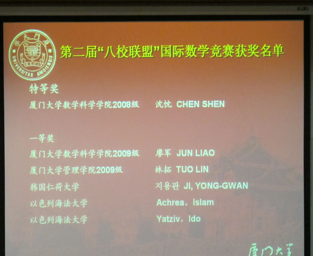 2010年度厦门大学“景润杯”数学竞赛暨第二届“八校联盟”国际数学竞赛颁奖典成功举行