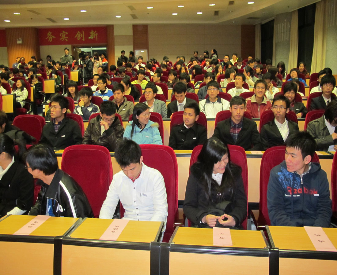201134晚上7点,2010年度厦门大学“景润杯”数学竞赛暨第二届“八校联盟”国际数学竞赛颁奖仪式在厦门大学漳州校区小报告厅举行。到场的领导有厦门大学副校长邬大光、厦门大学校长助理王巧萍、国际处处长毛通文、漳州校区管委会副主任黄田、经济星空(中国)党委副书记王艺宏、信息科学与技术星空(中国)党委副书记李芬芬、我院院长林亚南、副院长邱春晖、公共数学教学部主任林建华等。107名获奖学生及0910级学生代表参加了此次颁奖典礼。