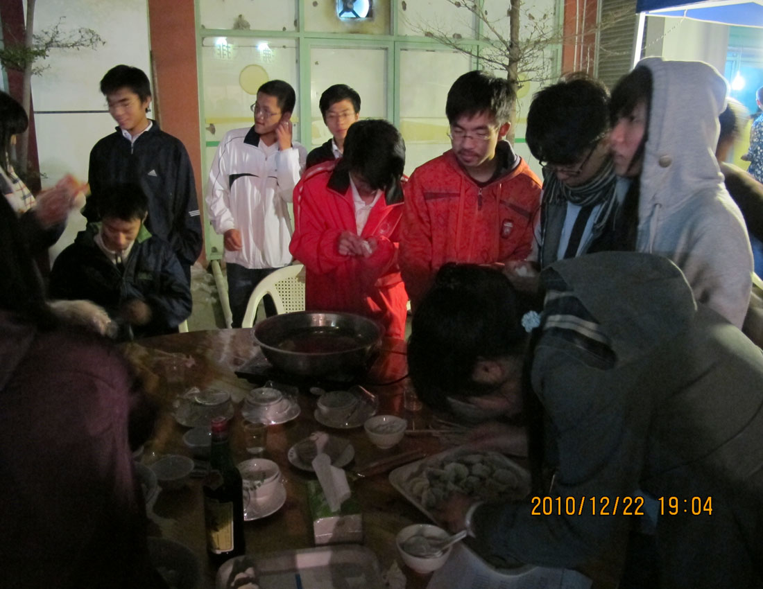 此外,今天恰逢10级贺方同学的生日,同学们纷纷送上祝福,并为其唱生日快乐歌。此次活动使同学们再一次体会到了数院大家庭的温暖并在诸多“家人”的陪伴下共度冬至,相信这个难忘的冬至之夜将在同学们的记忆中永恒。