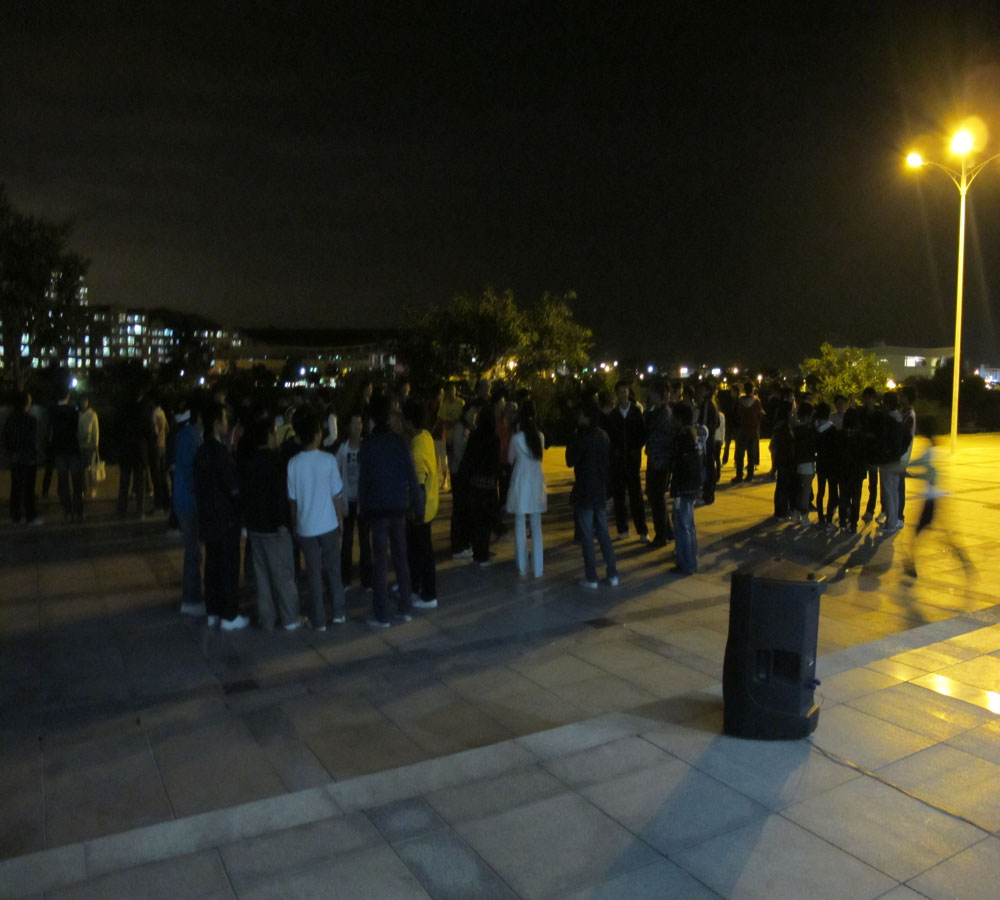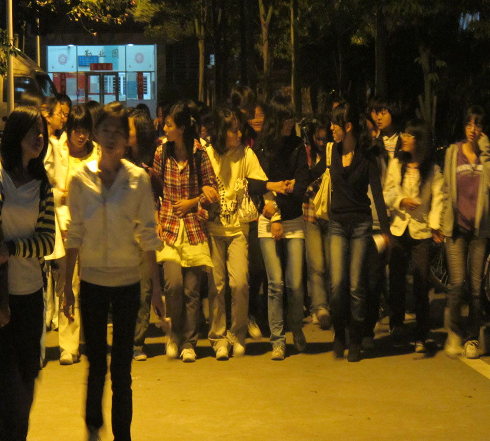 当晚7点,我院09、10级女生从芙蓉移步博学,邀“千呼万唤始出来”的男生们共赴晚会。大部队汇合成功后一起前往学生活动中心指定晚会场地。
