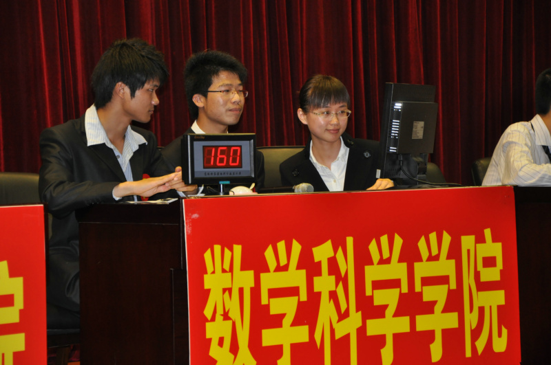 由09级姜冲,张树成和08级张晨薇组成的数学科学星空(中国)代表队在与海洋与环境星空(中国),管理星空(中国),国际关系星空(中国),新闻传播星空(中国)等五个星空(中国)的同场竞技中,最终以出色的表现夺得了决赛二等奖的优异成绩。
